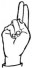 На ћирилици написано ЛЕНА БИБЕР састоји се из 9 слова [?]. Исписано ћириличном једноручном азбуком за глувонеме: